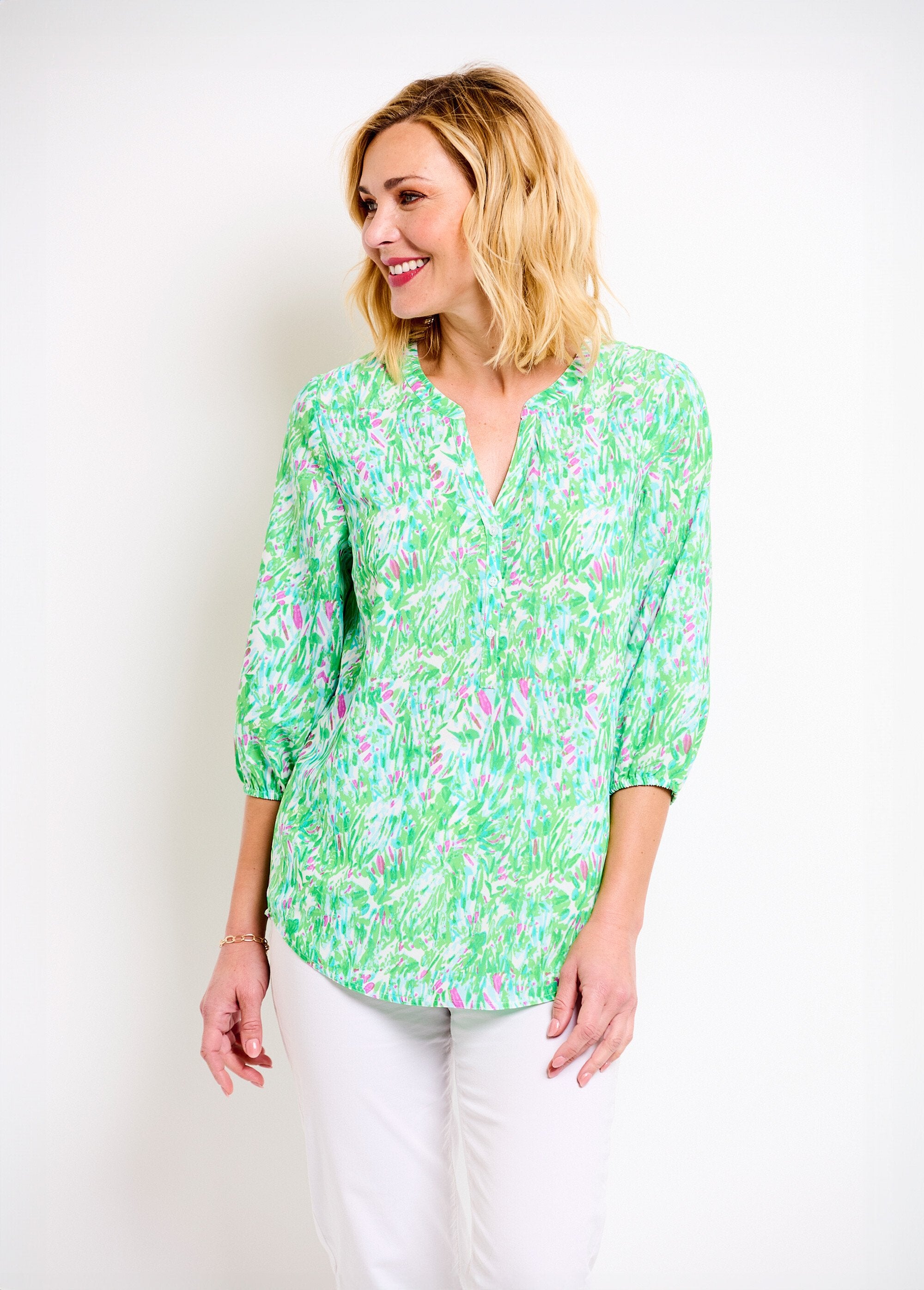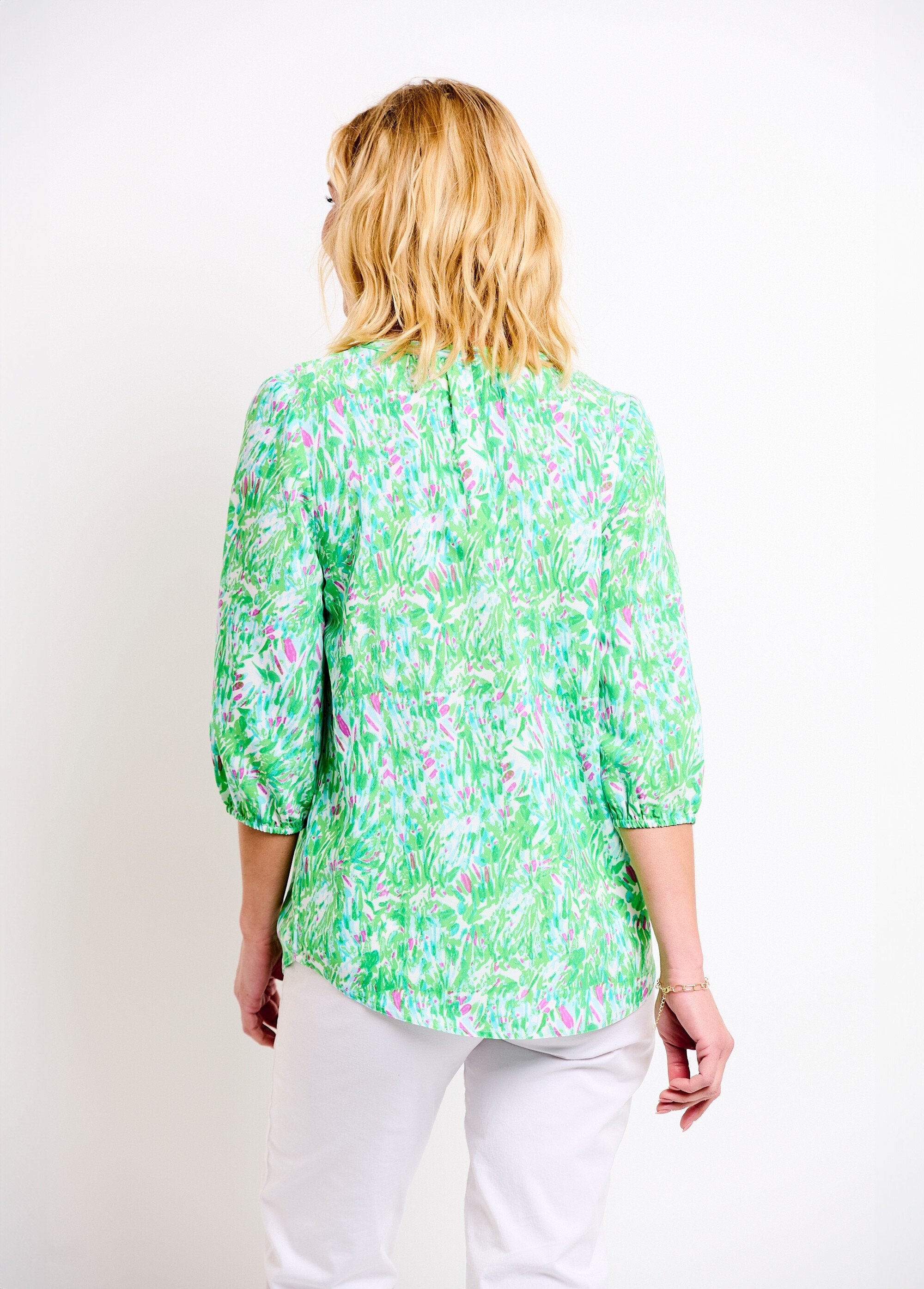 Loose_long_printed_tunic_with_3/4_sleeves_Green_print_FA1_slim Loose_long_printed_tunic_with_3/4_sleeves_Green_print_DO1_slim