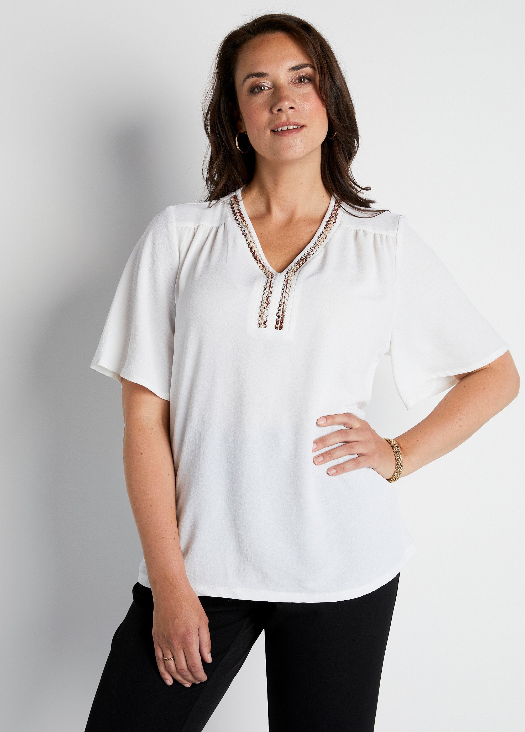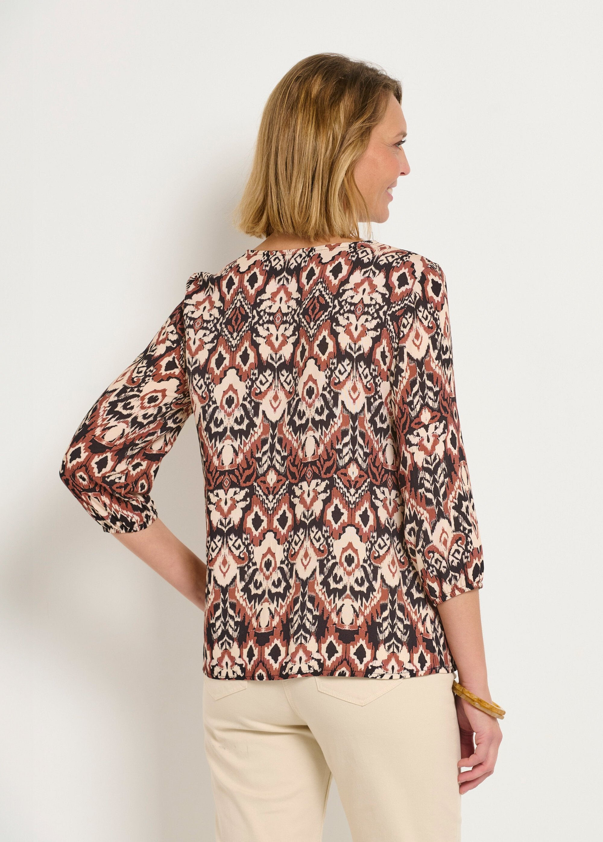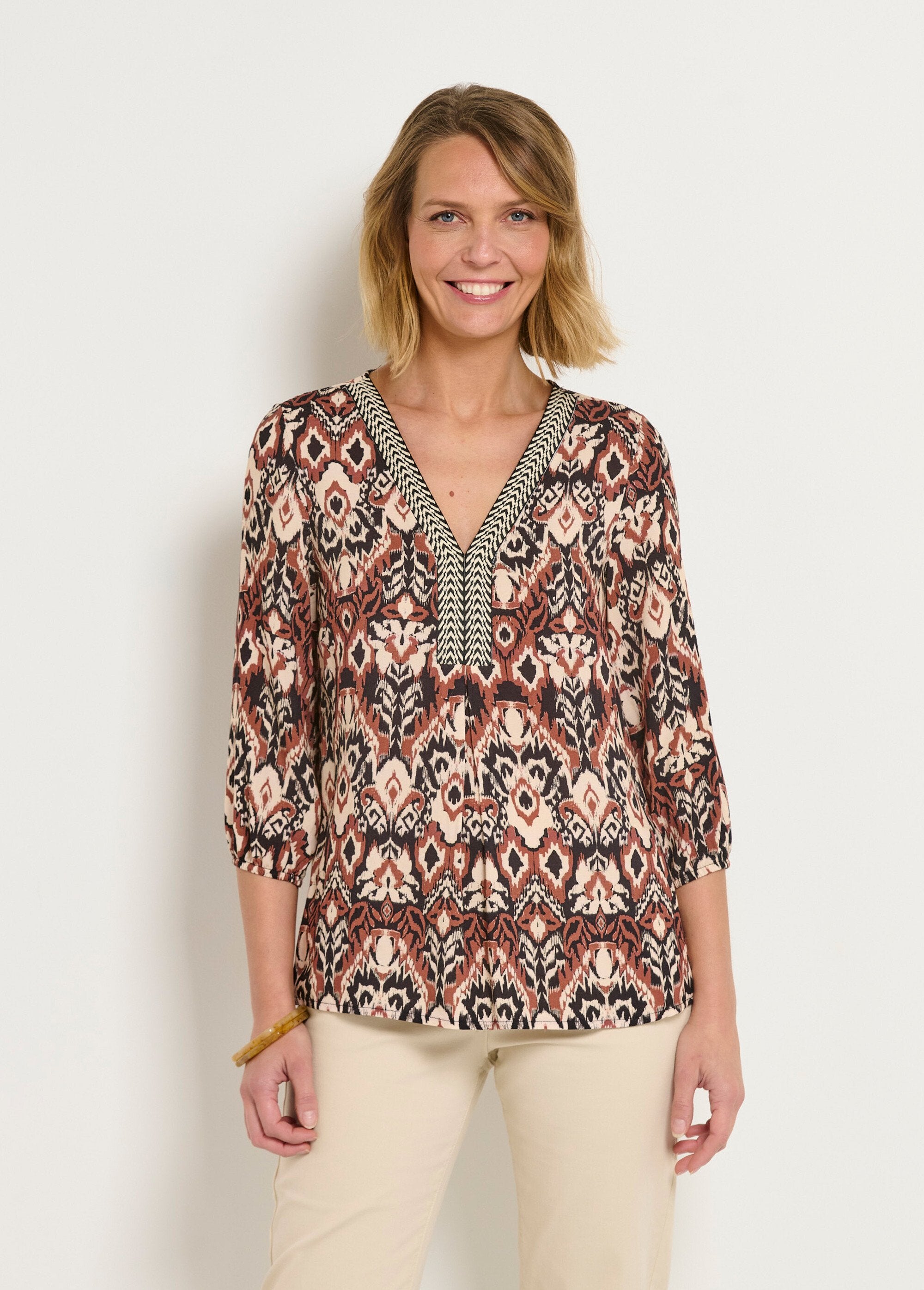 Ethnic_tunic_with_V-neck_braid_and_3/4_sleeves_Ecru_print_FA1_slim Ethnic_tunic_with_V-neck_braid_and_3/4_sleeves_Ecru_print_DO1_slim