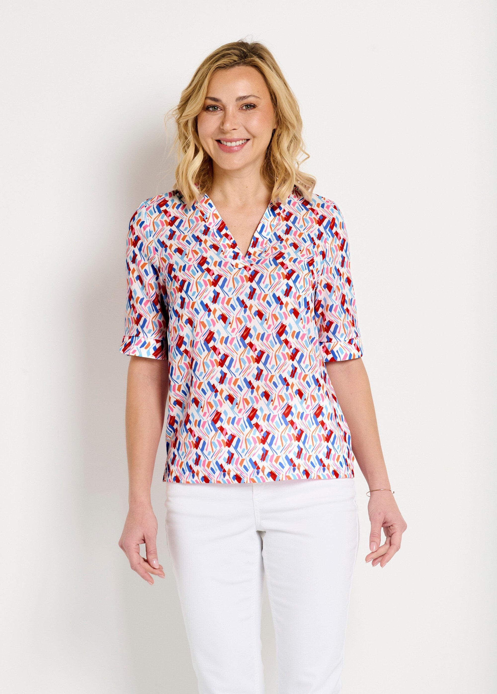 Straight_V-neck_tunic_with_short_printed_sleeves_Blue_and_pink_FA1_slim Straight_V-neck_tunic_with_short_printed_sleeves_Blue_and_pink_DO1_slim