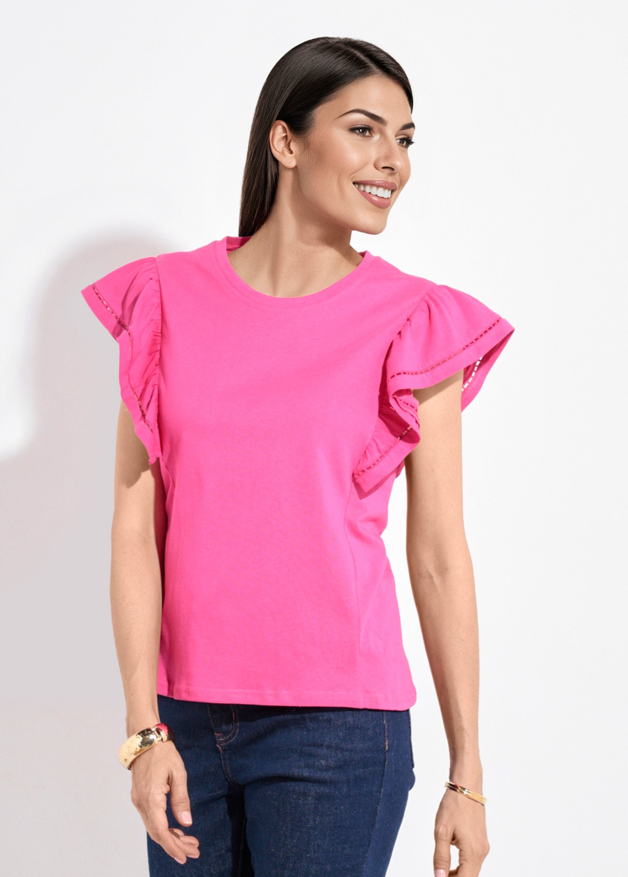 Openwork_ruffled_short-sleeved_T-shirt_Fuchsia_FA1_slim Openwork_ruffled_short-sleeved_T-shirt_Fuchsia_DO1_slim